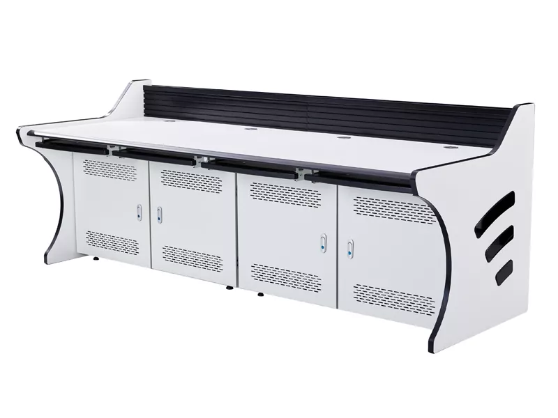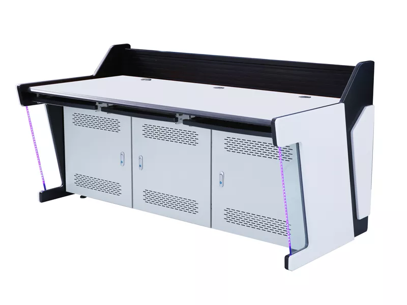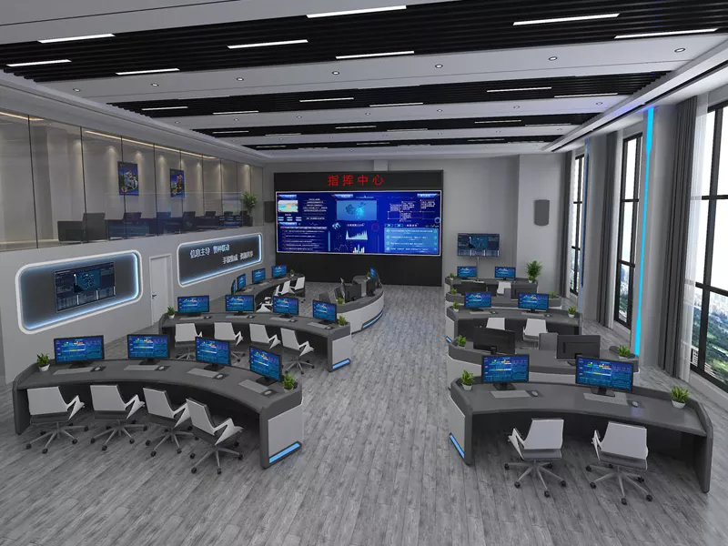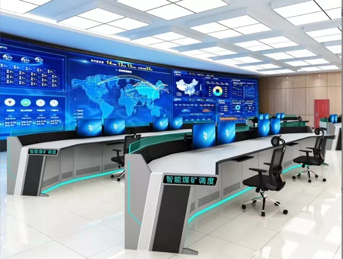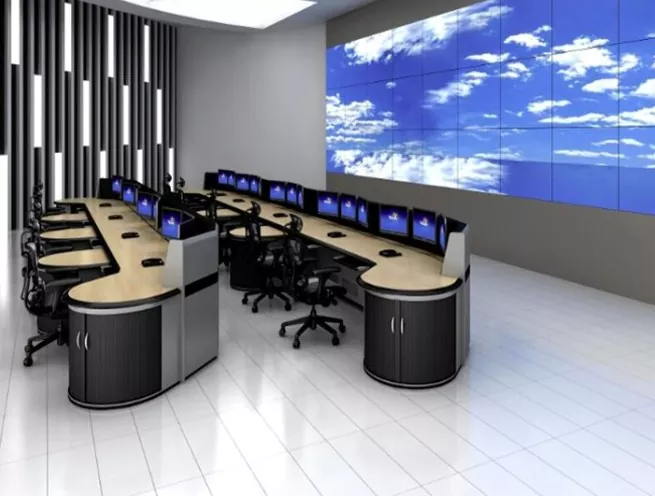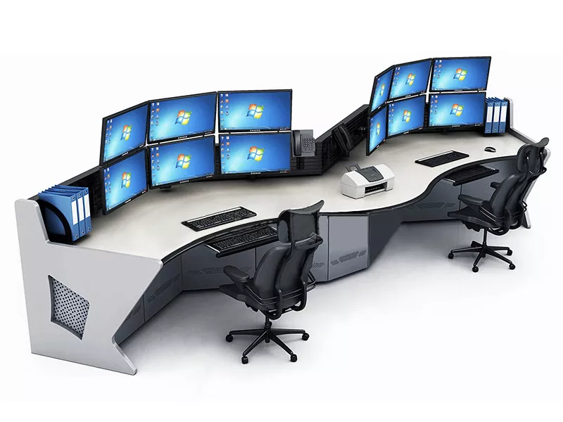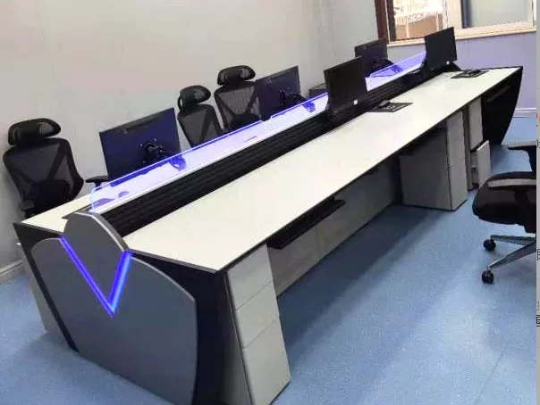 2. الهيكل والحجم: حدد تصميمات مستقيمة أو على شكل حرف L أو على شكل حرف U أو مخصصة بناءً على مساحة مركز القيادة والاحتياجات التشغيلية، مع ترك مساحة كافية للمعدات والأفراد.